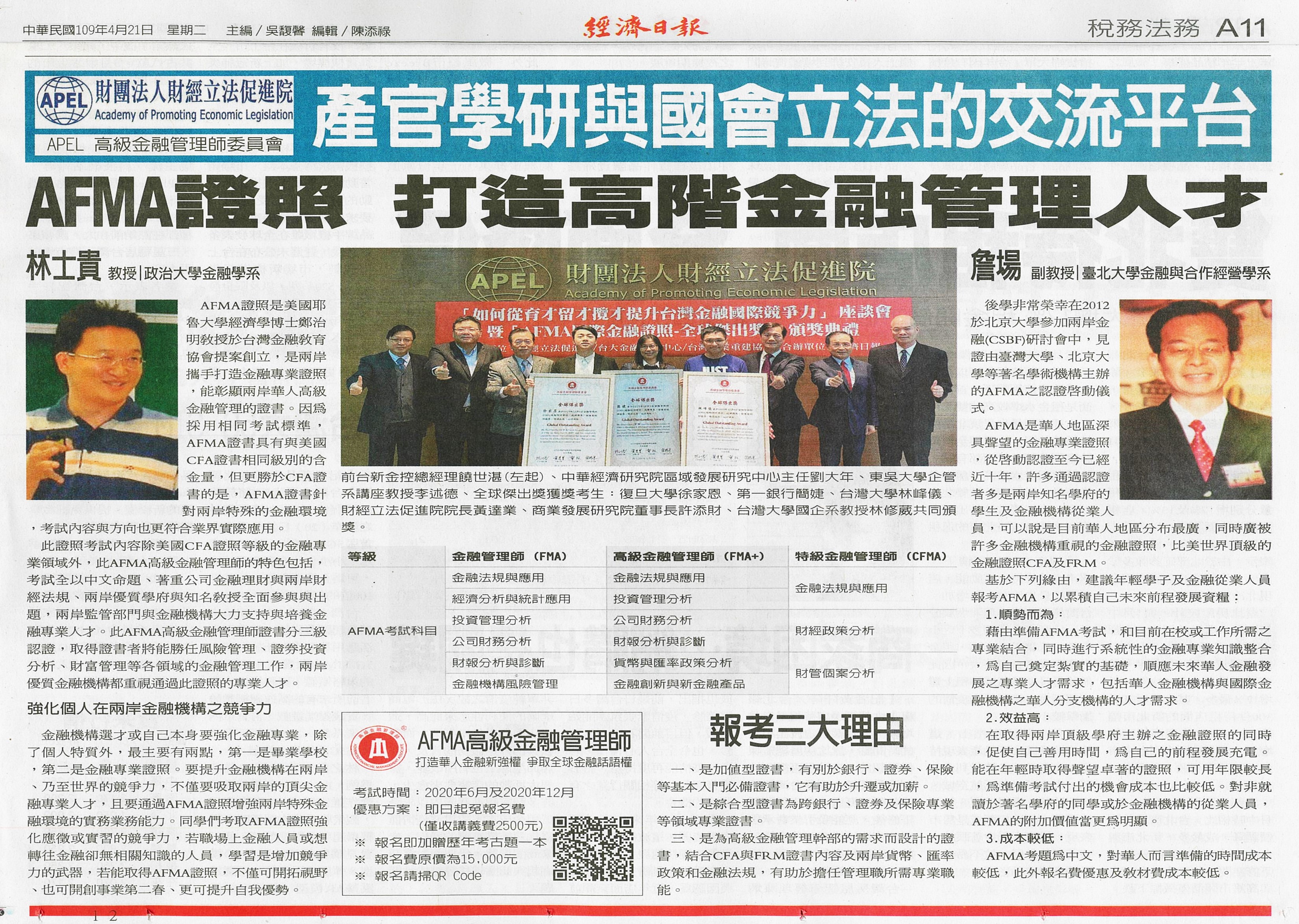 AFMA學程 打造高階金融專才