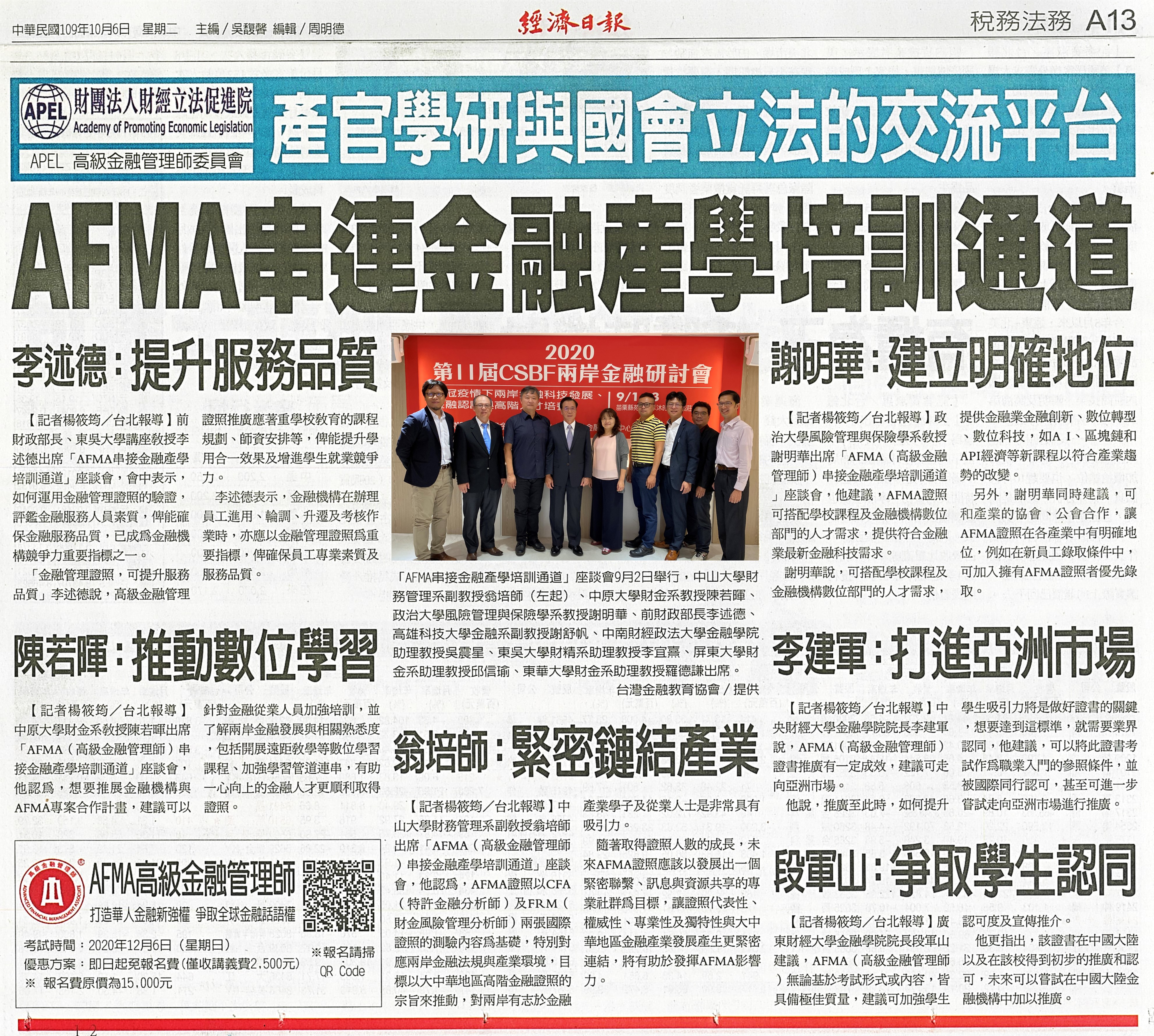AFMA串連金融產學培訓通道