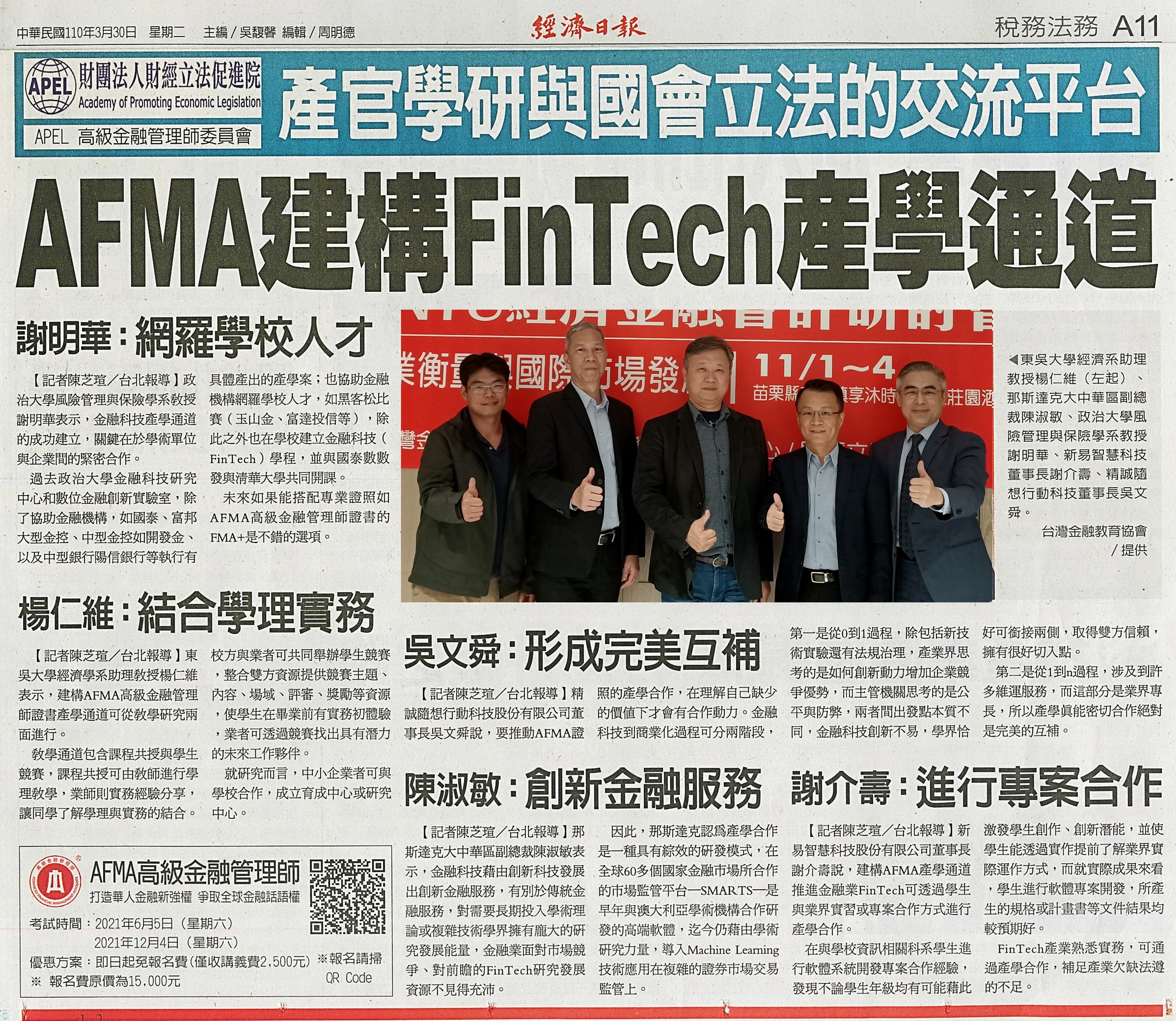 AFMA建構FinTech產學通道
