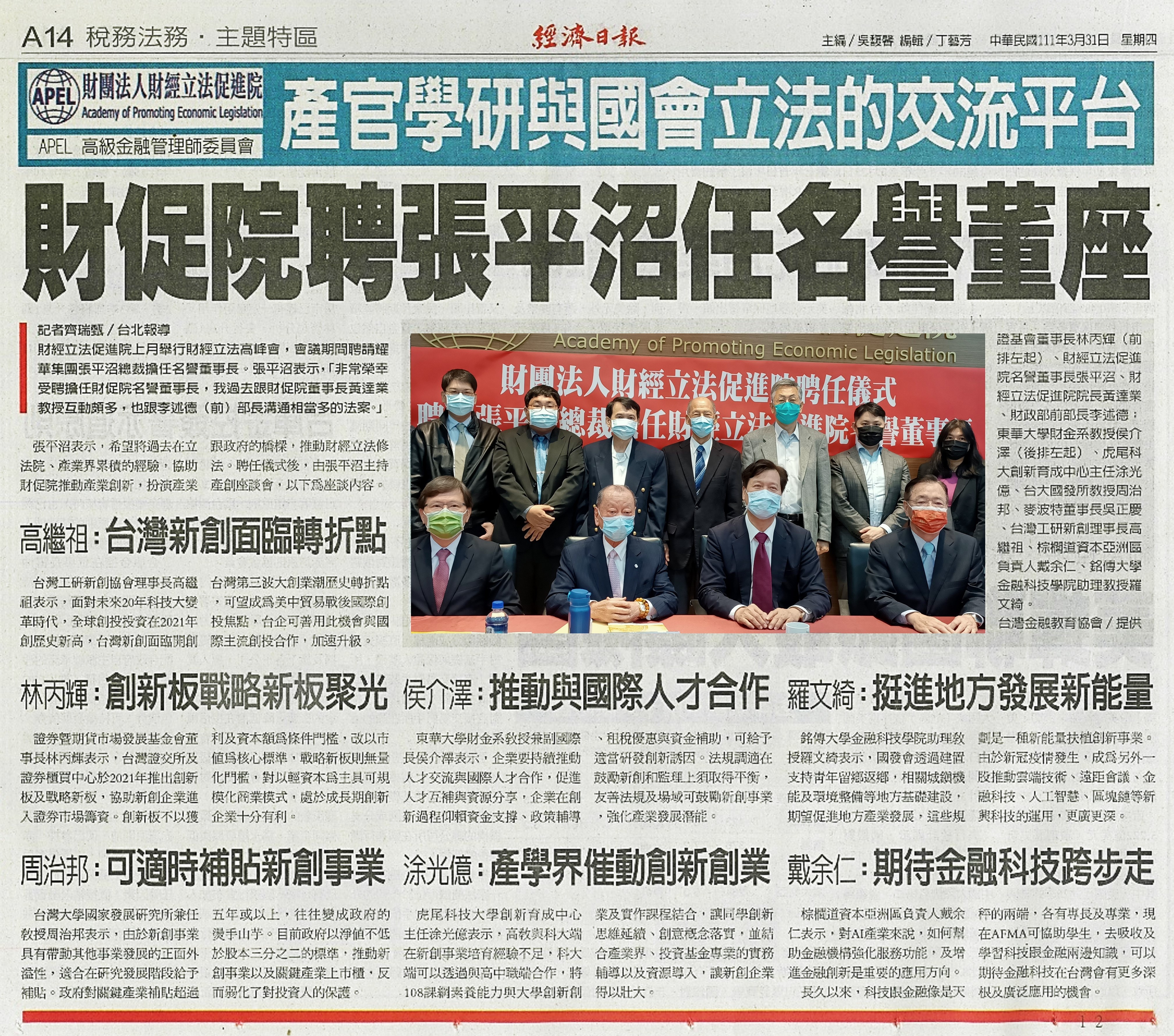 財促院聘張平沼任名譽董座