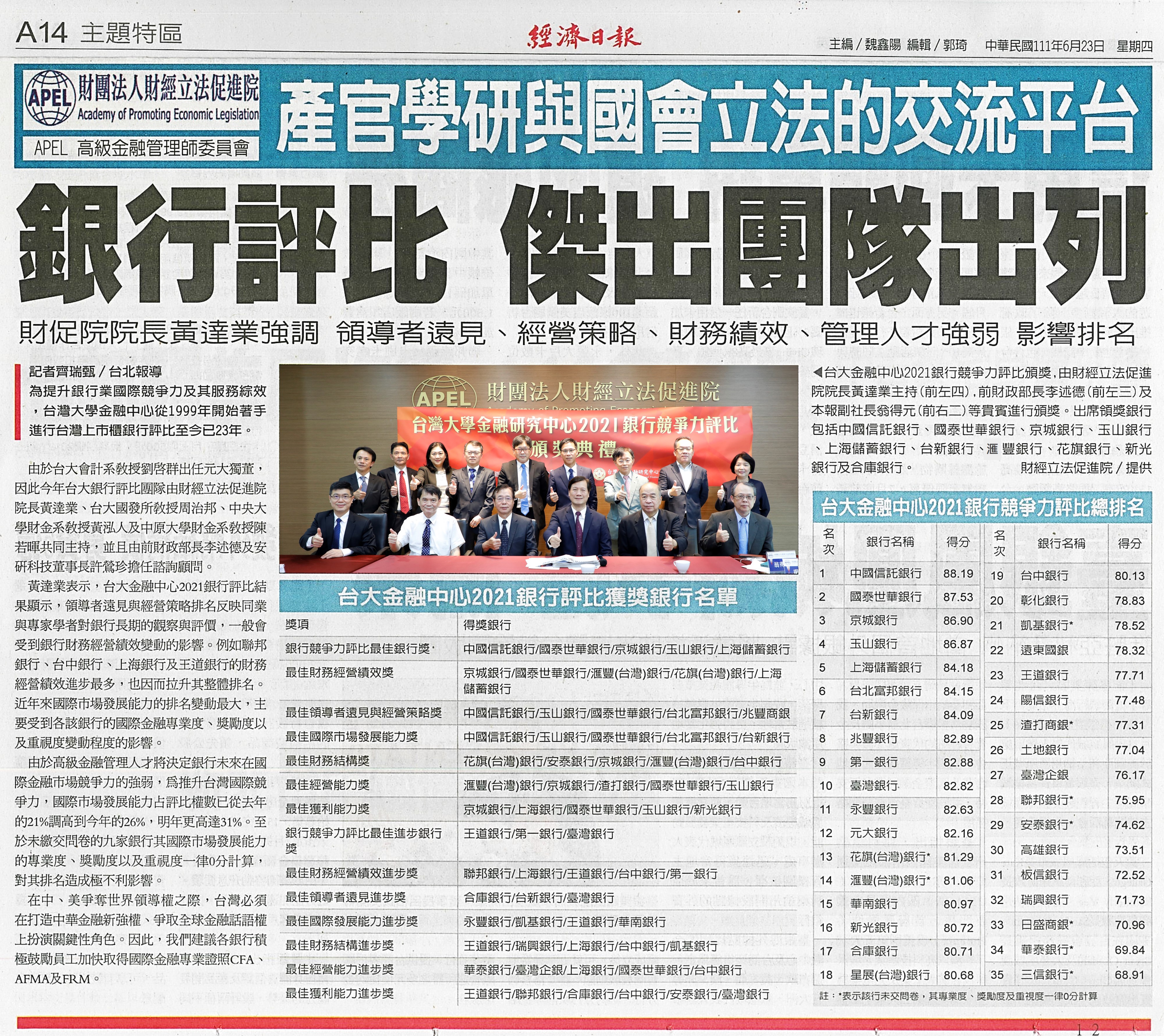 銀行評比 傑出團隊列出